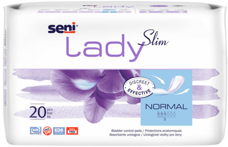 Az alkalmi, csepegéses vizeletinkontinenciával érintett nő választása a Seni Lady Slim Normal méretű inkontinencia betét. Kiemelt biztonságot és diszkréciót nyújt. Használatával az inkontinens nő életminősége javítható, mobilitása fenntartható. A betét nedvszívó rétegének szuperabszorbens tartalma meggátolja azon baktériumok szaporodását, melyek a kellemetlen szago