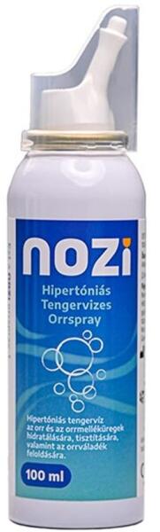 Nozi hipertóniás tengervizes orrspray 100 ml-es alumínium flakonban. A hipertóniás tengervíz olyan oldat, amelyben a sókoncentráció sokkal magasabb, mint az emberi test sejtjeiben, ami lehetővé teszi az orr- és melléküregek nyálkahártya duzzanatának természetes csökkentését. A hipertóniás tengervizet fertőzés, arcüreggyulladás vagy allergia okozta orr- és arcüreg-dugul
