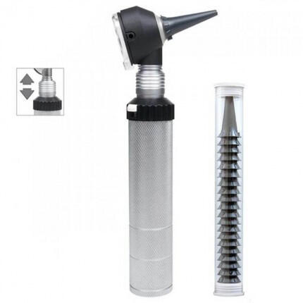 A Combilight F. O. 30 LED otoszkóp könnyen használható a fej és a fogantyú közötti kattanó zárnak köszönhetően. Az otoszkóp nagy teljesítményű LED-lámpával rendelkezik, száloptikával, így a hallójárat optimálisan megvilágított. Ezenkívül az otoscope praktikus fúvócsatlakozással rendelkezik, amellyel pneumatikus otoszkópiát is végezhet. Termékadatok: Egyszerű ke