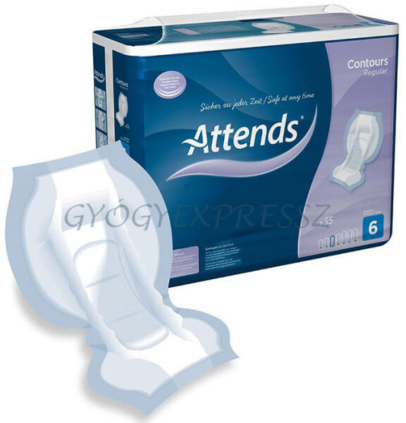 35 db/csomag 1414 ml nedvszívóképesség Az Attends Contours betétek anatómiailag formáltak, speciálisan a középsúlyos és a súlyos inkontinenciára lettek kifejlesztve. A betéteknek nagyon puha a fedőrétege és az alatta lévő Quick Dry réteg gyorsan, nagy területen teríti szét, megköti és magába zárja a folyadékot, így biztosít maximális szárazságot a bőrnek. A lágy