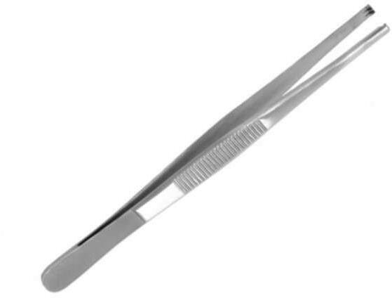 20 cm hosszú 1x2 horog végenként sebészeti beavatkozásnál a szövetek, bőrszélek megfogására, rögzítésére szolgál, külső rovátkolt felülete, megakadályozza a kéz megcsúszását rozsdamentes acélból, sterilizálható.