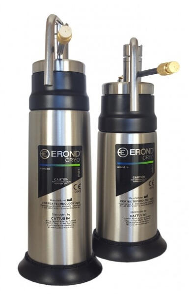 Számazási ország : Románia Márka : Erond Jótállás : 1 év Erősen hiszünk abban, hogy az EROND® Cryo bevezetésével szabványokat állíthatunk fel a bőrgyógyászat területén. Célunk az, hogy ügyfeleinknek a legjobb orvostechnikai berendezéseket kínáljuk. EROND® Cryo MAXI (0,5 literes, 20-24 óra statikus tartási idő) Az EROND® Cryo egységekkel két technika alkalmazható: