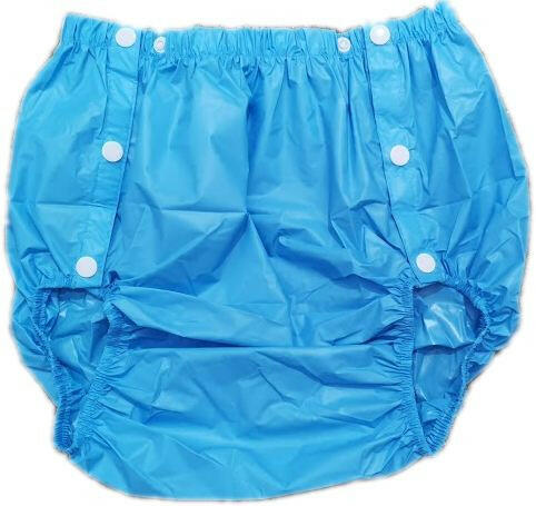 Kék színű, patentos TPU pelenkázó nadrág több méretben Kék színű, műanyag patentos. Hat darab műanyag patent, oldalanként három darab. Derék résznél oldalanként plusz egy-egy patentozási lehetőség (szorosabbra, vagy lazábbra patentolhatod). Kiváló minőségő TPU anyagból készült (Thermoplastic Polyurethane, hőre lágyuló poliuretán). A TPU anyag, gumi és műanyag k