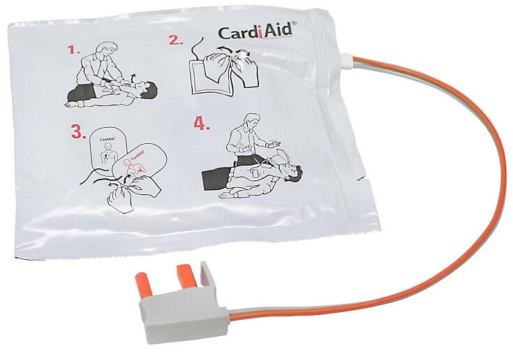 Származási hely : Dánia Márka : CardiAid Egyszer használatos felnőtt elektródák Az elektródák élettartama 3 év 8 éves kortól, vagy 25 kg feletti testsúlynak ajánlott Az elektródák kábelhossza: 1,3 m