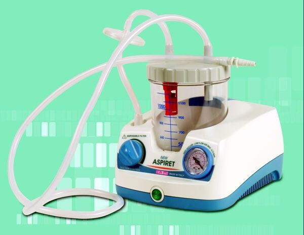 Termékleírás: A NEW ASPIRET gyógyászati célra kifejlesztett elektromos készülék, mely 230V ~ 50 Hz elektromos hálózatról működik. A készülék a testváladékok (nyál, vér, torokváladék, hurut) orron vagy szájon keresztül történő leszívására, illetve a légcsőből való eltávolítására szolgál, mind felnőtt, mind gyermek pácienseknél. Könnyen szállítható az e