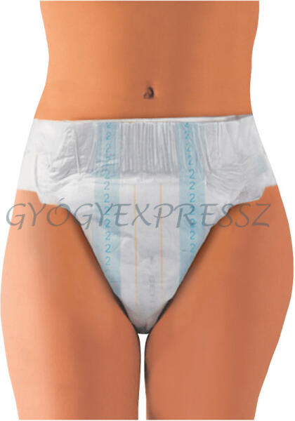 Fehér színű, fóliás külső borítású, L méretű felnőtt pelenka. Nedvszívó kapacitás 4790ml Derékbőség 110cm - 150cm Szagvédelem Latex mentes Rugalmas derékpántok elöl és hátul Szivárgás védelem 4 db széles, újraragasztható ragasztócsík