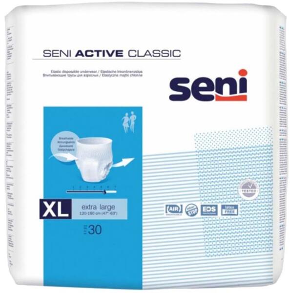 A Seni Active Classic nadrágpelenka az enyhe vagy középsúlyos inkontinencia mellett aktív életvitelt folytatók számára ajánlott, illetve rehabilitáció időszakára. Az ár 1 darab termékre vonatkozik!