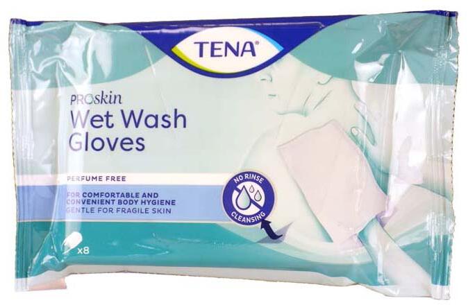 A nedves törlőkendők finomságát és a kesztyűk kényelmét egyesítő Tena ProSkin nedves mosdatókesztyű ideális a napi tisztálkodáshoz, és szappant, illetve vizet sem igényel.
