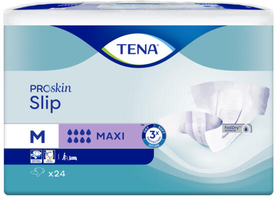 A TENA Slip Maxi inkontinencia-nadrágpelenka állítható tépőzárakkal készül a tökéletes illeszkedés, a kényelem és a szivárgás elleni védelem érdekében. Más hagyományos felnőtt pelenkanadrágoktól eltérően a TENA ProSkin Slip egy puha, textilszerű anyagból készült, testhezálló kialakítású termék, amely jelentős biztonságot ad a szivárgás ellen. Korlátozottan