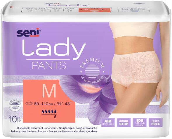 Abszorbens fehérnemű azon nők számára, akik a mozgásszabadságot értékelik, aktívak, és vizelet-inkontinenciával való érintettségük ellenére minden helyzetben szárazon és biztonságban szeretnék érezni magukat. Barackvirág színben, amely jól illik a női ruhatárhoz.