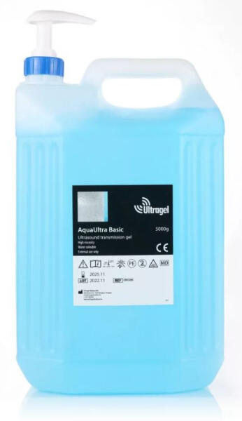 Származási ország : Magyarország Márka : Ultragél Az Ultragél AquaUltra Basic 5000 ml-es ultrahang gél jellemzői: - magas vezetőképesség - kedvező viszkozitás - nem tapad, nem ragad - vízben oldódó - buborékmentes - nem tartalmaz olyan alapanyagot amely az ultrahang készülék fejét károsítaná - vezető ultrahang készülék gyártók ajánlják - világoskék színű, szagt