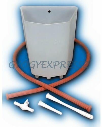 Az irrigátor szett 1,5 literes függeszthető műanyag tartálya a beöntő folyadék tárolására szolgál, egészségügyi műanyagból készült. Az irrigátor tömlő1,1 mhosszú, bordás, egészségügyi gumiból készült vezeték, amely az irrigáló kannát köti össze a három részes irrigátor garnitúrával. Az irrigátor garnitúra a szett három részből álló (csap, rövid- ill