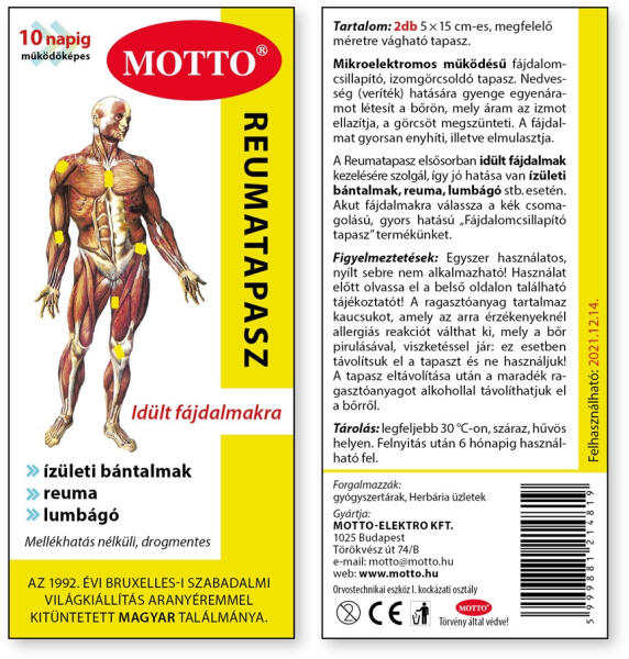 Gyógyszermentes fájdalomcsillapító tapasz. Krónikus ízületi, izom- és a gerincfájdalmak kiegészítő kezelésére ajánlott. A tapasz felületére felvitt ásványi anyag és a nedvesség (veríték) hatására olyan reakciót vált ki, amely kismértékű feszültségváltozást generál. Ez hatással van a bőr alatti szövetekre, elősegíti az izmok ellazulását és a fájdalom enyh