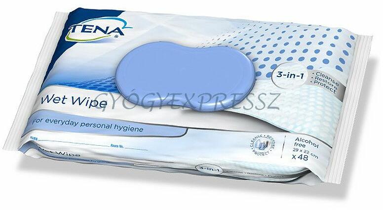 A TENASET Wetwipe nedves törlőkendő különösen alkalmas inkontinens betegek bőrének tisztítására. A termék puha, bőrbarát, gyengéd a bőrhöz. Nagyméretű nedves törlőkendő 100% viszkózból. Tisztítja, hidratálja és védi a sérülékeny bőrt A TENA 3in1 Nedves törlőkendő puha és vastag, kíméletesen tisztítja, ápolja és védi a bőrt. Sokoldalúan használható Nem