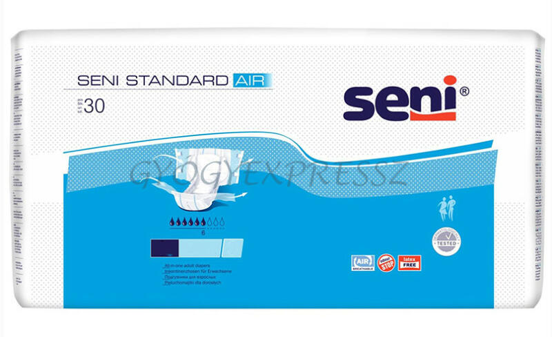 Seni Standard nadrágpelenka súlyos inkontinencia kezeléséhez. dupla ragasztószalag nedvességindikátor védőgáttal rendelkezik dupla nedvszívó mag latexmentes Innovatív légáteresztő szálfátyol oldalszárnyak Tökéletes a nadrágpelenka cserék közötti hosszabb szünetekre pl. : éjszakára; Méretek: Pelenka méreteCsípőbőségNedvszívóképess