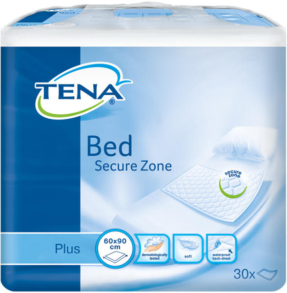 A puha Tena Bed Secure Zone Plus egy megbízható ágyvédő inkontinencia esetére. Ha akaratlan vizeletvesztés vagy ágybavizelés történne, megvédi a matrac, a szék, a kanapé vagy a kerekes szék felületét. Az ár 1 darab termékre vonatkozik!