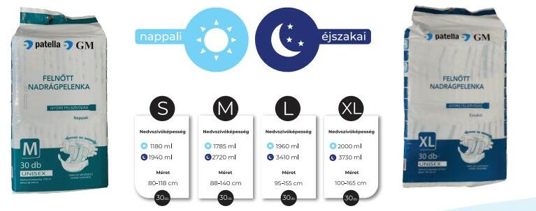 A GM felnőtt pelenkák úgy lettek tervezve, hogy hatékonyan felszívják a nedvességet, és megtartsák azt, ezzel megakadályozva a nedvesség szivárgását. Használata alkalmas lehet közepes vagy súlyos inkontinencia esetén, fogyatékkal élő, vagy ágyhoz kötött betegek számára, mozgáskorlátozottság, súlyos hasmenés, illetve demencia esetén. Termékjellemzők: A légáteresz