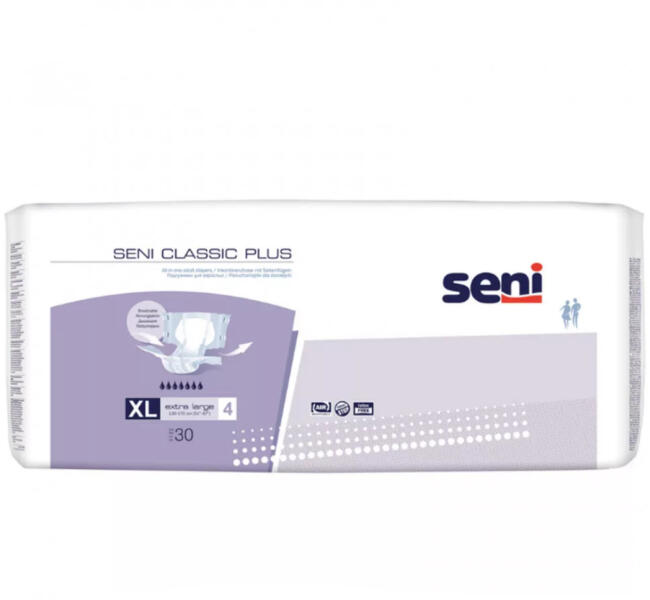Az anatómiailag formázott Seni pelenkanadrág minden szintű inkontinencia esetén alkalmas. Seni Classic Plus - Extra Large Szívóképesség: 2.900 ml Ajánlott: súlyos inkontinencia esetén