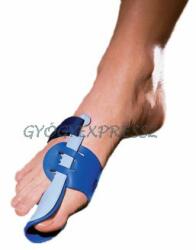 Hallux valgus (öregujj bütyök) korrekciós ortézis. Jobb és bal lábra külön-külön kapható. Anatómiailag kialakított. Polifoammal bélelt műanyag sín, amely öregujj gacsos állását korrigálja. Rögzítése és állítása tépőzárral történik. Elsősorban éjszakai rögzítőként használható. A cipőviselést akadályozza, cipőben nem használható! Higiéniai termék!