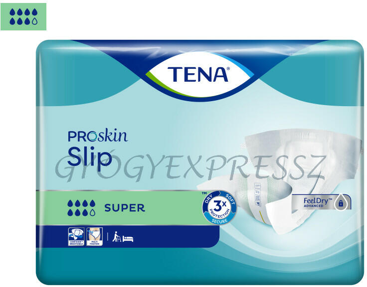 A TENA Slip Super inkontinencia-nadrágpelenka állítható tépőzárakkal készül a tökéletes illeszkedés, a kényelem és a szivárgás elleni védelem érdekében. A TENA Slip nadrágpelenka puha, textilszerű anyagból készült, testhezálló kialakítással, valamint hatékony nedvszívó maggal, amely biztonságot nyújt a szivárgás ellen. A FeelDry Advanced technológiának köszön