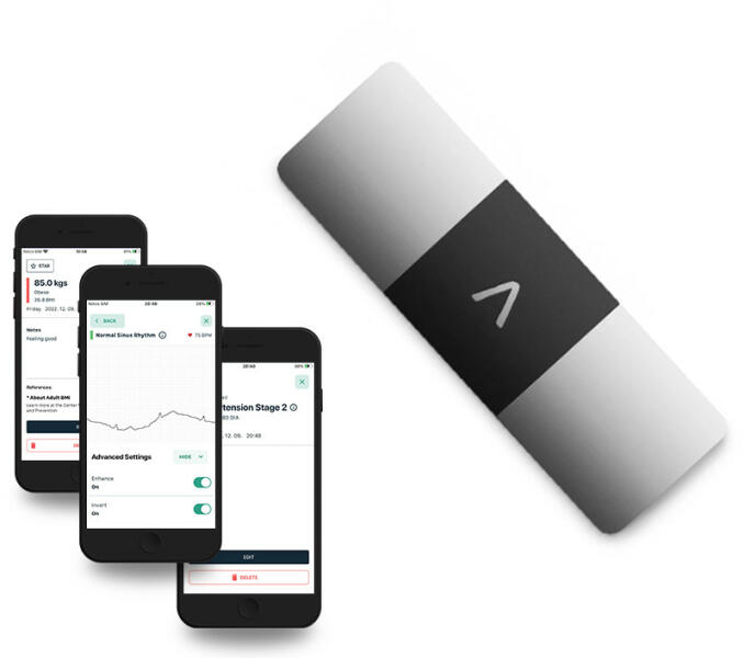 6 féle jelzés szívéről. Otthona kényelméből. Szív-egészségügyi információk egy érintésnyire . Ossza meg részletes 6-elvezetéses EKG eredményeit orvosával, hogy jobb rálátása legyen egészségi állapotára, segítve ezzel a még pontosabb diagnózis felállításában és ellátásában. Egyszerű használat - vezetékek, tapaszok és gél nélkül Kedvező ár-érték arán
