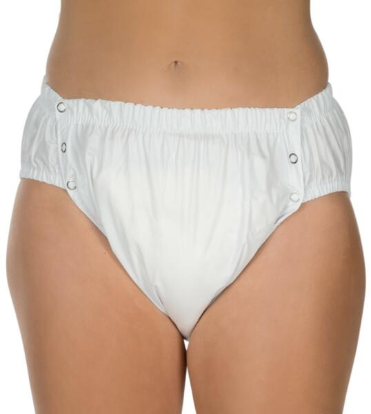 Suprima patentos PVC pelenkázó nadrág fehér színben és több méretben Hat fémpatent, oldalanként három darab. Derék résznél oldalanként plusz egy-egy patentozási lehetőség (szorosabbra, vagy lazábbra patentolhatod). Tanga típus, csípő résznél keskenyebb. Széles combközép (ágyék) rész. Kiváló minőségű PVC anyagból készült. Ez a Suprima pelenkázó nadrág csak f