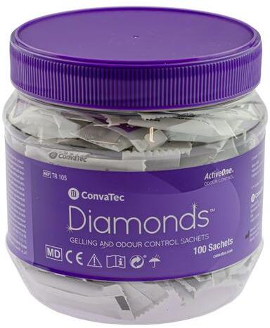 A Diamonds zselésítő tasak a sztómazsákba dobva megakadályozza a zsák felfúvódását, megköti a híg székletet, vizeletet és a kellemetlen szagokat. A zsák tartalma nem halmozódik fel egy helyen, egyenletesen oszlik el. A Diamond zselésítő tasak használata könnyű, gyors és tiszta – a tasak feltépés nélkül is a sztómazsákba helyezhető. A tasak feloldódik a sztómazsá
