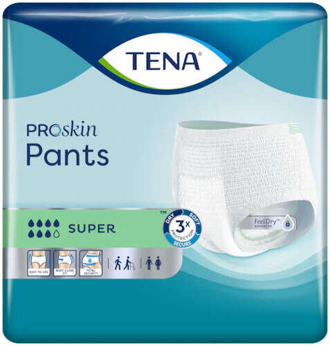A Tena Pants Super egy diszkrét pelenkanadrág, amely kényelmesen követi a test vonalát. Férfiaknak és nőknek egyaránt alkalmas. Innovatív megoldásainak köszönhetően hármas védelmet nyújt a szivárgás, a szagok és a nedvesség ellen. Egyedi kialakítású dupla nedvszívó zóna az optimális szárazság és védelem biztosításához. Integrált szivárgásvédelem a fokozott bi