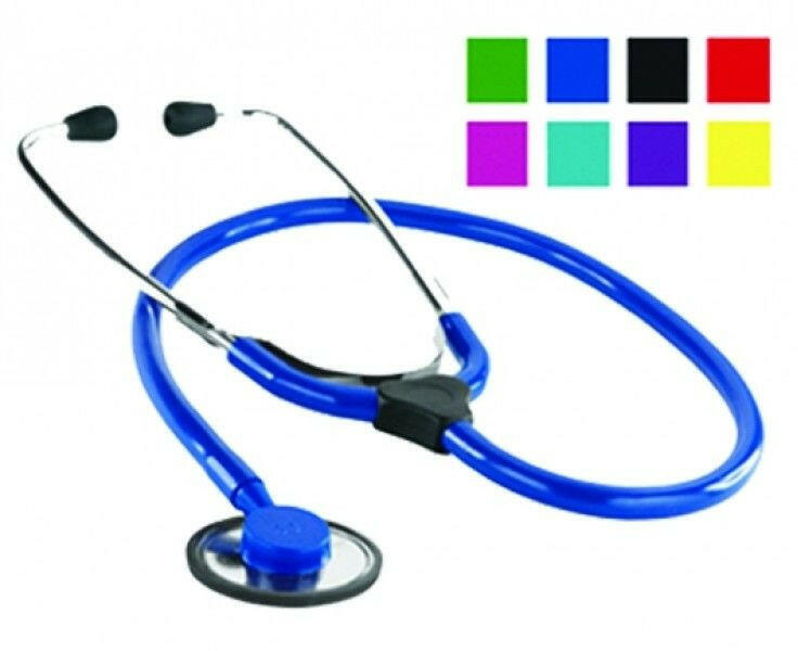 Színes egyfejes phonendoscóp ami alkalmas a tüdő és a szív hangjának vizsgálatára. Kiváló minőségű, krómozott fejjel Membrán: Ø 43.8 mm Y cső hossza 55cm