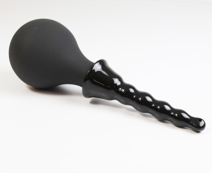 A végbél átmosására alkalmas irrigátor speciálisan kialakított fejjel. Ennek a körtefecskendőnek a beöntőfeje lépcsősen szélesedő, így mindenki megtalálhatja azt a mélységet, amit még kényelmesnek érez. A ballonba felszívott folyadék az irrigátor fején található két apró nyíláson át áramlik ki oldalirányba. Mivel a vízsugarak közvetlenül a bélfalra irányuln