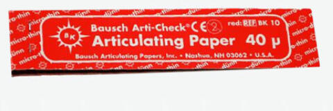 A Bausch 40 mikro-vékony artikulációs papír különösen vékony és szakadásálló, mindkét oldalon folyékony festékbevonattal. A harapás erősségét halványabb, illetve sötétebb árnyalattal jelölik. Az okklúziós pontok azonnal láthatóvá válnak.