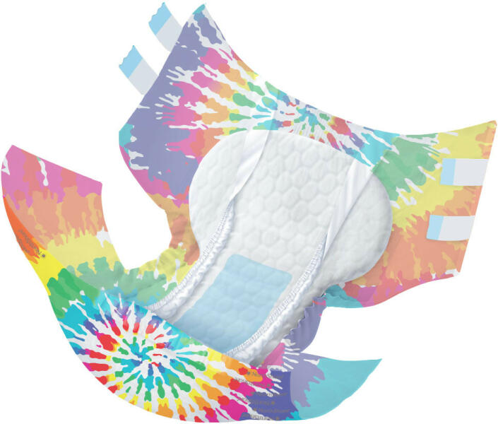Színes, mintás, fóliás külső borítású, M méretű felnőtt pelenka. Nedvszívó kapacitás 4500ml Derékbőség 76cm - 92cm Magas szivárgás védelem Megerősített elülső rész Gyors felszívódást biztosító mag Két ragasztószalag Rugalmas derékpántok elöl és hátul