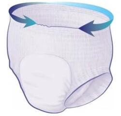 Fehér színű, mintás, fóliás külső borítású, L méretű felnőtt pelenka. Nedvszívó kapacitás 7500ml Derékbőség 94cm - 107cm Magas szivárgás védelem Megerősített elülső rész Gyors felszívódást biztosító mag Négy ragasztószalag Rugalmas derékpántok elöl és hátul