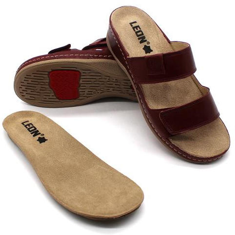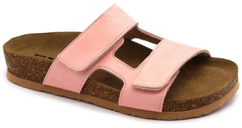 Női nyitott, bőr papucs. Mind a két szíj tépőzárral szabályozható . A talp anatómiai kialakítású parafa, puha velúrbőr talpbetéttel és csúszásmentes habszivacs alsó résszel. Ajánlott minden napos otthoni vagy utcai használatra, könnyű nyári sétára ( több órás gyaloglás után sem fárad el a láb ). Méretcm3522,53623, 5372438253925,540264126, 54227 Felsőrész anyag