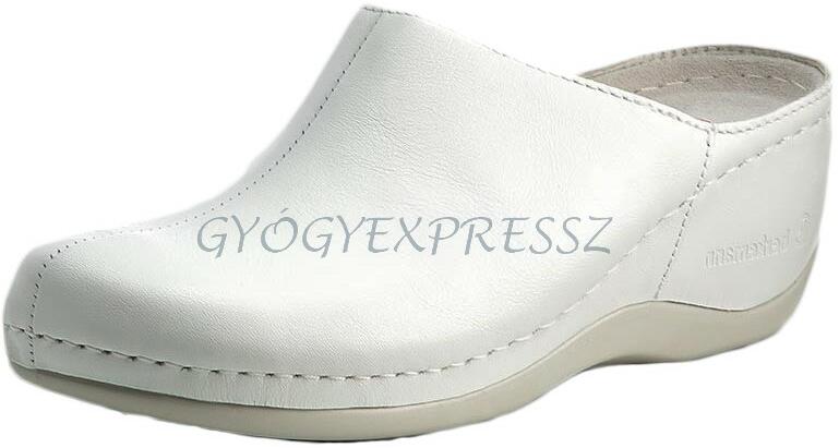 Dekoratív női nappabőr ( nagyon puha felsőrész ) klumpa, műanyag csúszásmentes talppal. A felsőrész bősége csattal szabályozható. Az anatómiai kialakítású, puha bőr talpbetét kivehető, így bármikor tisztítható és cserélhető. Ajánlott: mindennapos utcai használatra, otthonra vagy munkahelyre ( több órás, szaladgálós munka alatt sem fárad el a láb ). Méretcm3623
