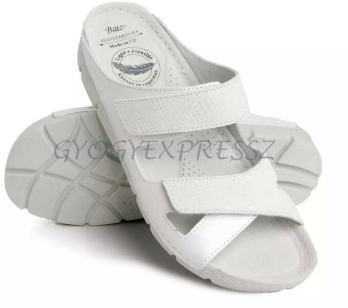 Leírás: Batz Emilia női papucs fehérben. Ám az előnyök sora itt még nem ér véget: nagyon könnyű darabról van szó, rugalmas talpszerkezete és állítható 2 pántja garantálja a tökéletes komfortot. Bármilyen lábfejre kiválóan idomul, a minőségi bőr felsőrész pedig szinte simogatja lábait. A fehér színű modellen enyhe gyöngyházfényű, Szín: Fehér Anyag: Bőr Saro