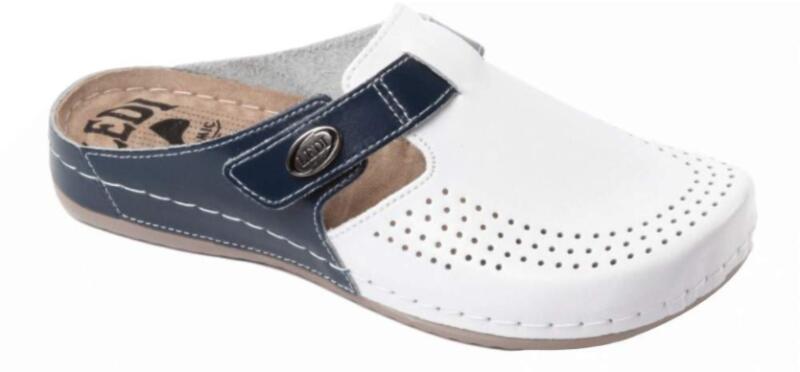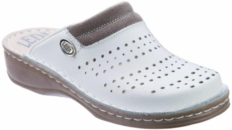 Női nappa bőr (nagyon puha felsőrész) klumpa, műanyag csúszásgátlós talppal. A felsőrész bemeneti nyílásánál, szivacsos szegő található, a komfortosabb érzetért. A természetes anyagnak és a felsőrész lyukacsosságának köszönhetően, jól szellőzik. Ajánlott: mindennapos utcai használatra, otthonra vagy munkahelyre ( több órás, szaladgálós munka alatt sem fárad e