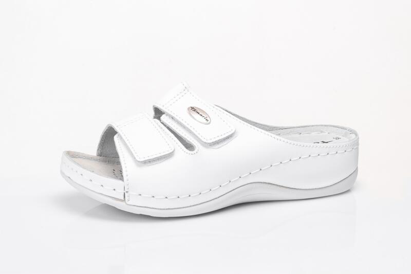 Tamaris fehér bőr telitalpú női papucs 4 cm sarokmagassággal. Kényelmes lábbeli akár az egész napra.