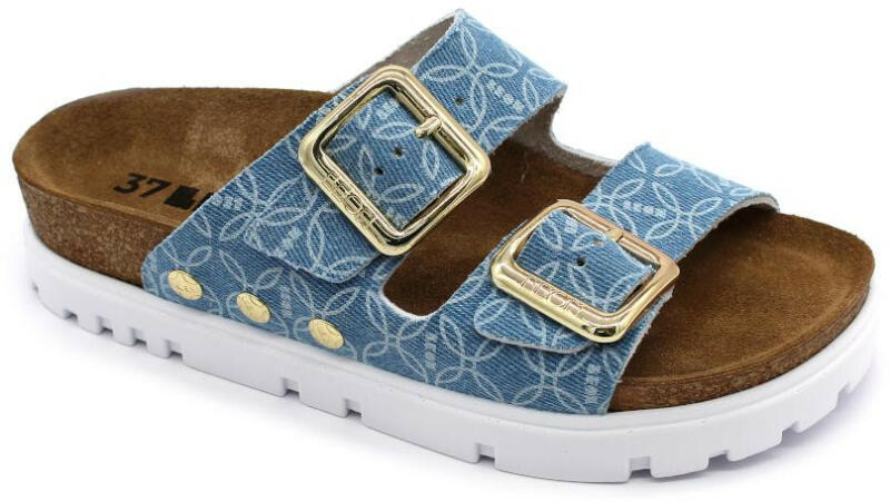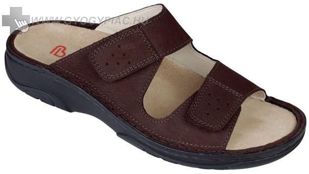 Női nyitott, bőr papucs, amely követi a legújabb divat trendeket. A felsőrész, a csatoknak köszönhetően, a lábhoz igazítható. A talp anatómiai kialakítású parafa, puha velúrbőr talpbetéttel és habszivacs alsó résszel. Ajánlott mindennapos otthoni vagy utcai használatra, könnyű nyári sétára. Méretcm3623,5372438253925, 540264126,5 Típus: papucs Belsőrész anyaga: bőr
