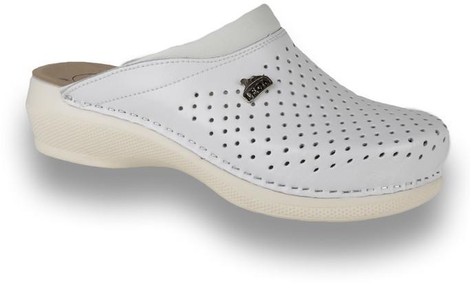 Női nappa bőr (nagyon puha felsőrész) klumpa, műanyag csúszásgátlós talppal. Oldalt tépőzár található, amellyel szabályozni lehet a bőséget. A talpbetét puha zselés, bőr. A természetes anyagnak köszönhetően jól szellőzik. Ajánlott: mindennapos utcai használatra, otthonra vagy munkahelyre ( több órás, szaladgálós munka alatt sem fárad el a láb ). Tulajdonságok: F