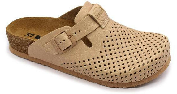 Női bőr klumpa, Oldalt csat található, amellyel szabályozni lehet a bőséget. A talp anatómiai kialakítású parafa, puha velúrbőr talpbetéttel és csúszásmentes habszivacs alsó résszel. Ajánlott minden napos otthoni vagy utcai használatra, könnyű nyári sétára ( több órás gyaloglás után sem fárad el a láb ). Méretcm3623,537243824, 539254025,54126 Felsőrész anyaga: v