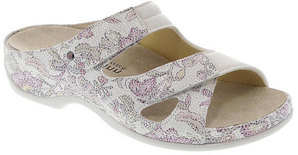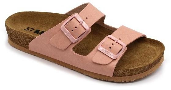 Női nyitott, bőr papucs. A felsőrész, a csatoknak köszönhetően, a lábhoz igazítható. A talp anatómiai kialakítású parafa, puha velúrbőr talpbetéttel és csúszásmentes habszivacs alsó résszel. Ajánlott minden napos otthoni vagy utcai használatra, könnyű nyári sétára ( több órás gyaloglás után sem fárad el a láb ). Méretcm3623,537243824, 539254025,54126 .