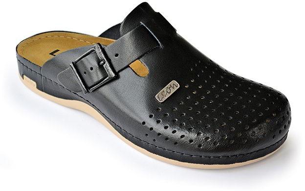 Férfi bőr klumpa, műanyag csúszásgátlós talppal. Oldalt fém csat található, amellyel szabályozni lehet a bőséget. A természetes anyagnak és a felsőrész lyukacsosságának köszönhetően, jól szellőzik. Ajánlott: mindennapos utcai használatra, otthonra vagy munkahelyre ( több órás, szaladgálós munka alatt sem fárad el a láb ). Tulajdonságok: Felsőrész anyaga: valódi