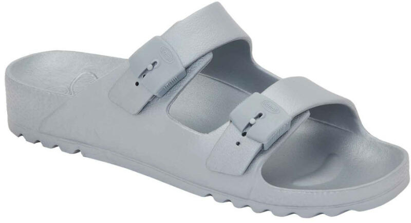 A Scholl Bahia, modern megjelenésű Scholl papucs, rendkívül könnyű és rugalmas. A talpbetét és a felsőrész homokfújt hatású textúrája jobb tapadás érdekében tervezték, még nedves láb esetén is segítse a biztonságos viselését. Eredeti Bioprint® kialakítással készült, amely segíti a láb megfelelő helyzetének megőrzését. Ráadásul az ikonikus Scholl® csat lehe