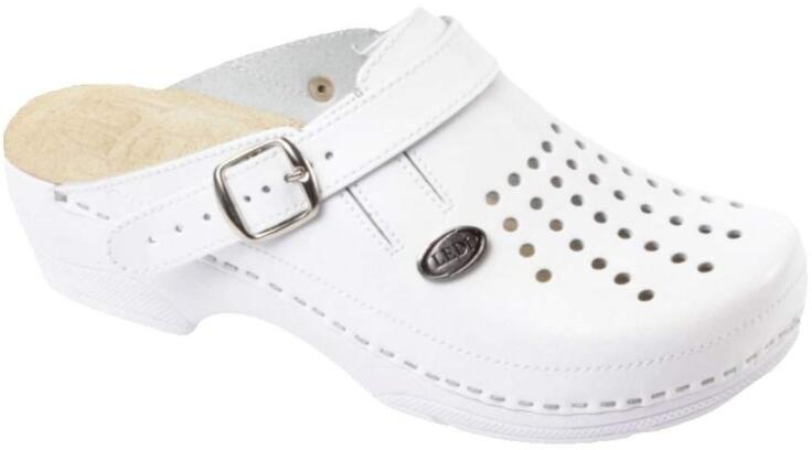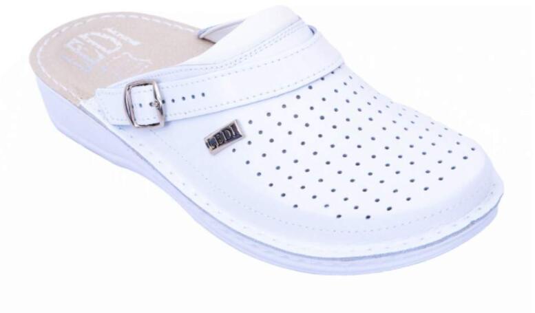 Női bőr klumpa, műanyag, ruganyos talppal, amely az alsó részén csúszásgátlóval rendelkezik. A talpbetét puha, szivacsos bőr. A természetes anyagnak és a felsőrész lyukacsosságának köszönhetően jól szellőzik. Ajánlott: mindennapos utcai használatra, otthonra vagy munkahelyre ( több órás, szaladgálós munka alatt sem fárad el a láb ). Felsőrész anyaga: valódi bőr