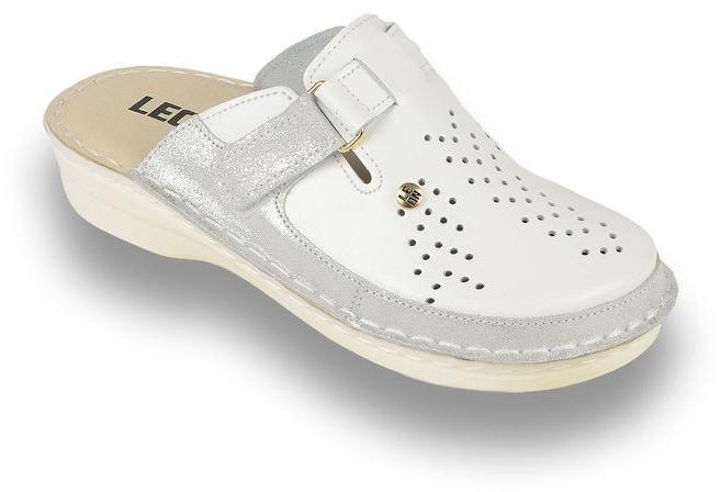 Dekoratív női bőr klumpa, műanyag csúszásgátlós talppal. Oldalt tépőzár található, amellyel szabályozni lehet a bőséget. A talpbetét puha zselés, bőr. A természetes anyagnak köszönhetően jól szellőzik. Ajánlott: mindennapos utcai használatra, otthonra vagy munkahelyre ( több órás, szaladgálós munka alatt sem fárad el a láb ). Méretcm362337243824,539254025, 541264