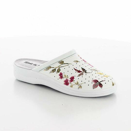 Dekoratív női nappabőr ( nagyon puha felsőrész ) klumpa, műanyag csúszásmentes talppal. A felsőrész bősége tépőzárral szabályozható. Az anatómiai kialakítású, puha bőr talpbetét kivehető, így bármikor tisztítható és cserélhető. Ajánlott: mindennapos utcai használatra, otthonra vagy munkahelyre ( több órás, szaladgálós munka alatt sem fárad el a láb ). Méret