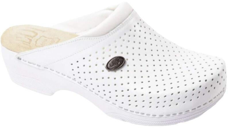 - Szín: fehér - Felsőrész: bevonatos bőr - Bélés: bőr - Talp: szintetikus - Vízállóság: nem Anatómiailag kialakított talpbetét résszel a kényelmes, akár egész napi álló munkához. A Back Guard technológia védi a lábfej sérülékeny külső peremét és a sarkat. Ennek következtében a gerincoszlop mentesül a káros behatásoktól.