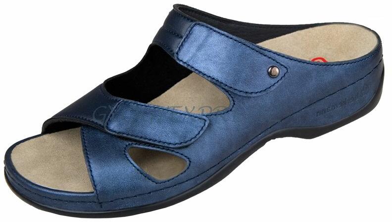 Női nyitott, divatos megjelenésű, bőr papucs. A felsőrész tépőzárral szabályozható. A talp anatómiai kialakítású parafa, puha velúrbőr talpbetéttel és habszivacs alsó résszel. Ajánlott minden napos otthoni vagy utcai használatra, könnyű nyári sétára ( több órás gyaloglás után sem fárad el a láb ). Felsőrész anyaga: valódi bőr felső Belsőrész anyaga: bőr b