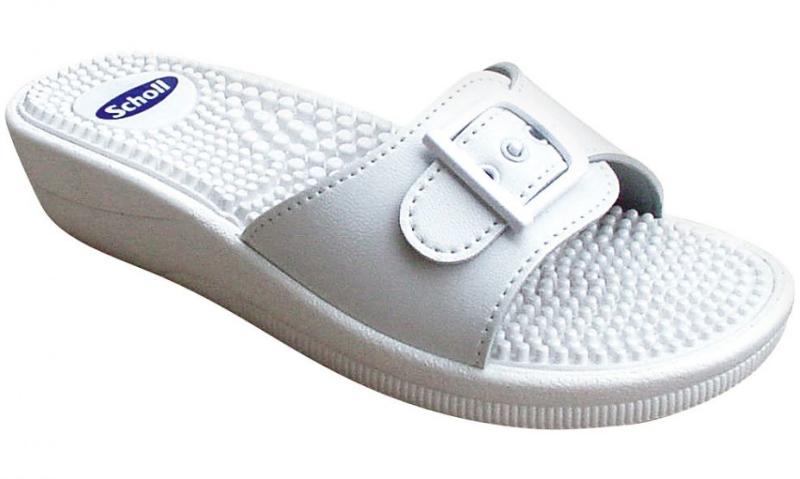 A Scholl tüskés talpú papucs a talp érintkező felületeinek masszírozása révén a vérbőséget serkenti, ezáltal jótékonyan fokozza a vérkeringést. Ezen felül boltozati alátámasztás biztosítja a talpforma anatómiai szempontú kialakítását. Felsőrésze a csatos pántnak köszönhetöen minden lábformára jól illeszkedik. Szintetikus anyagból készült a hosszú élettarta